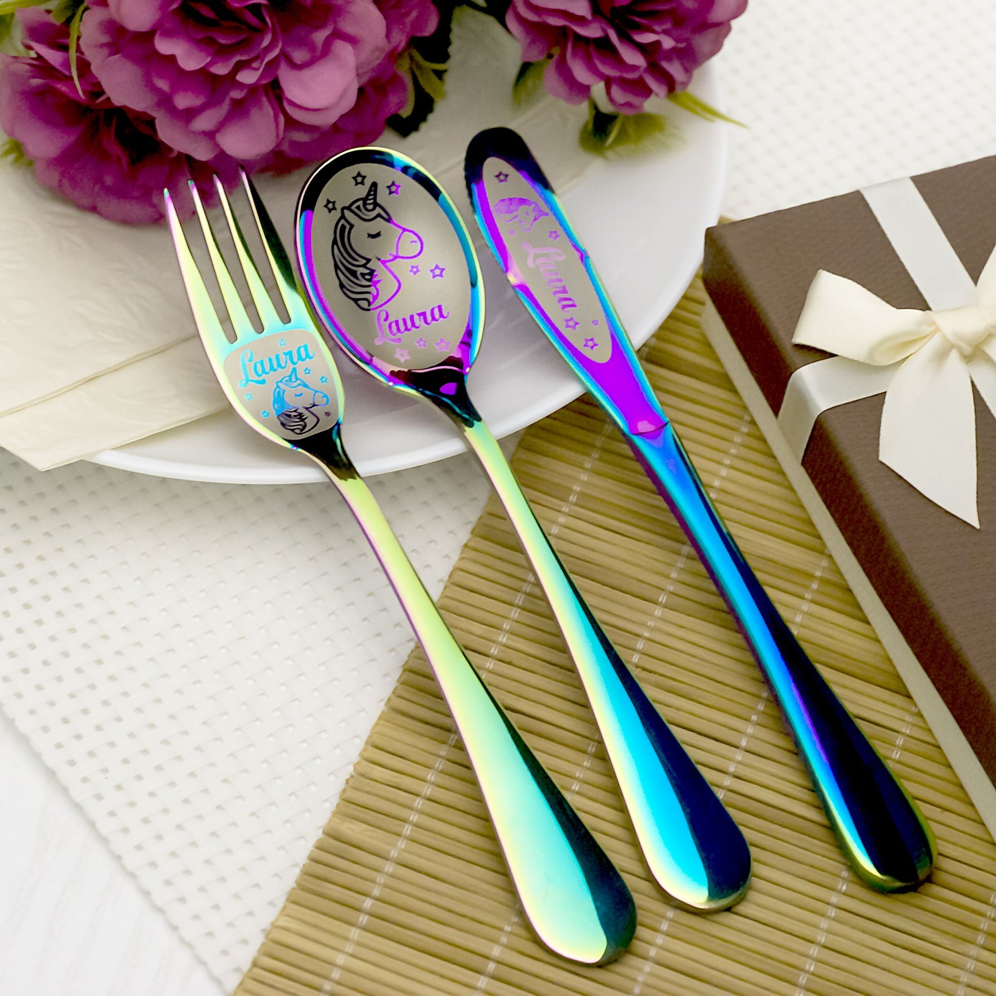 Personalized kids cutlery with engraved name- Unicorn Gifts